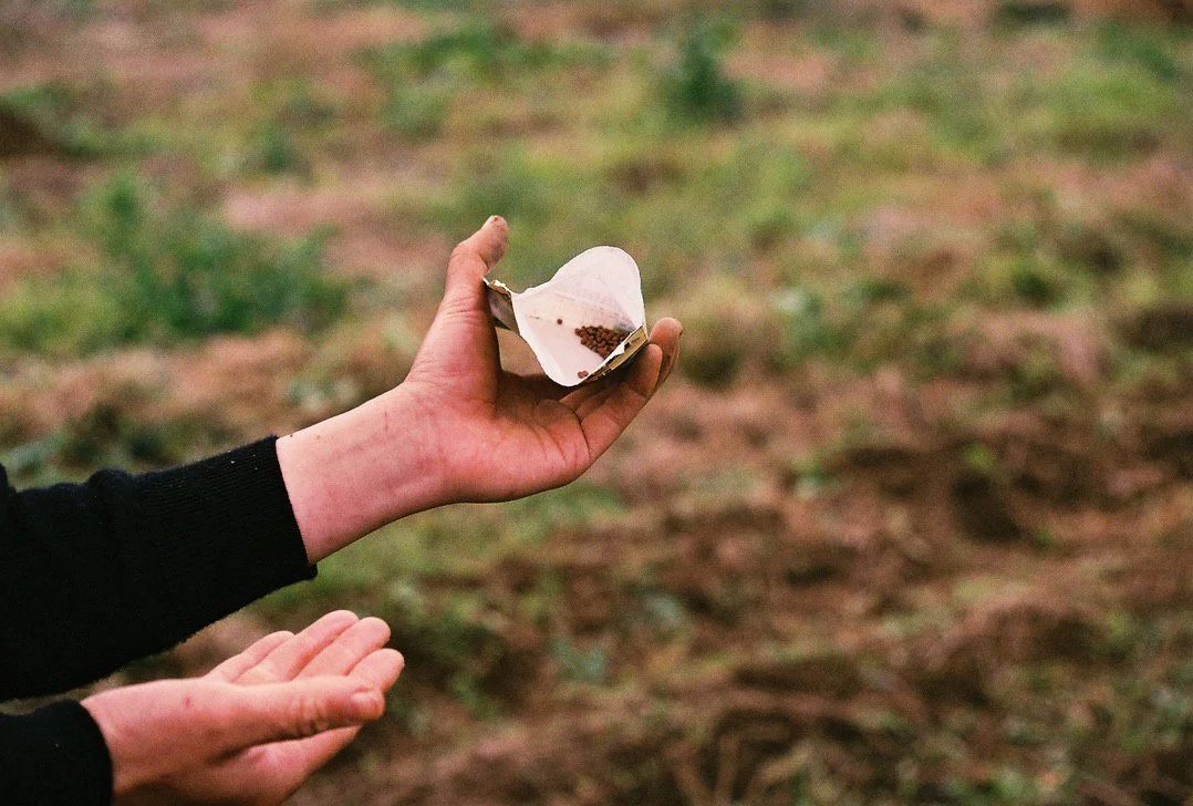 Makita with the seed view during artistic fieldwork project, 2022